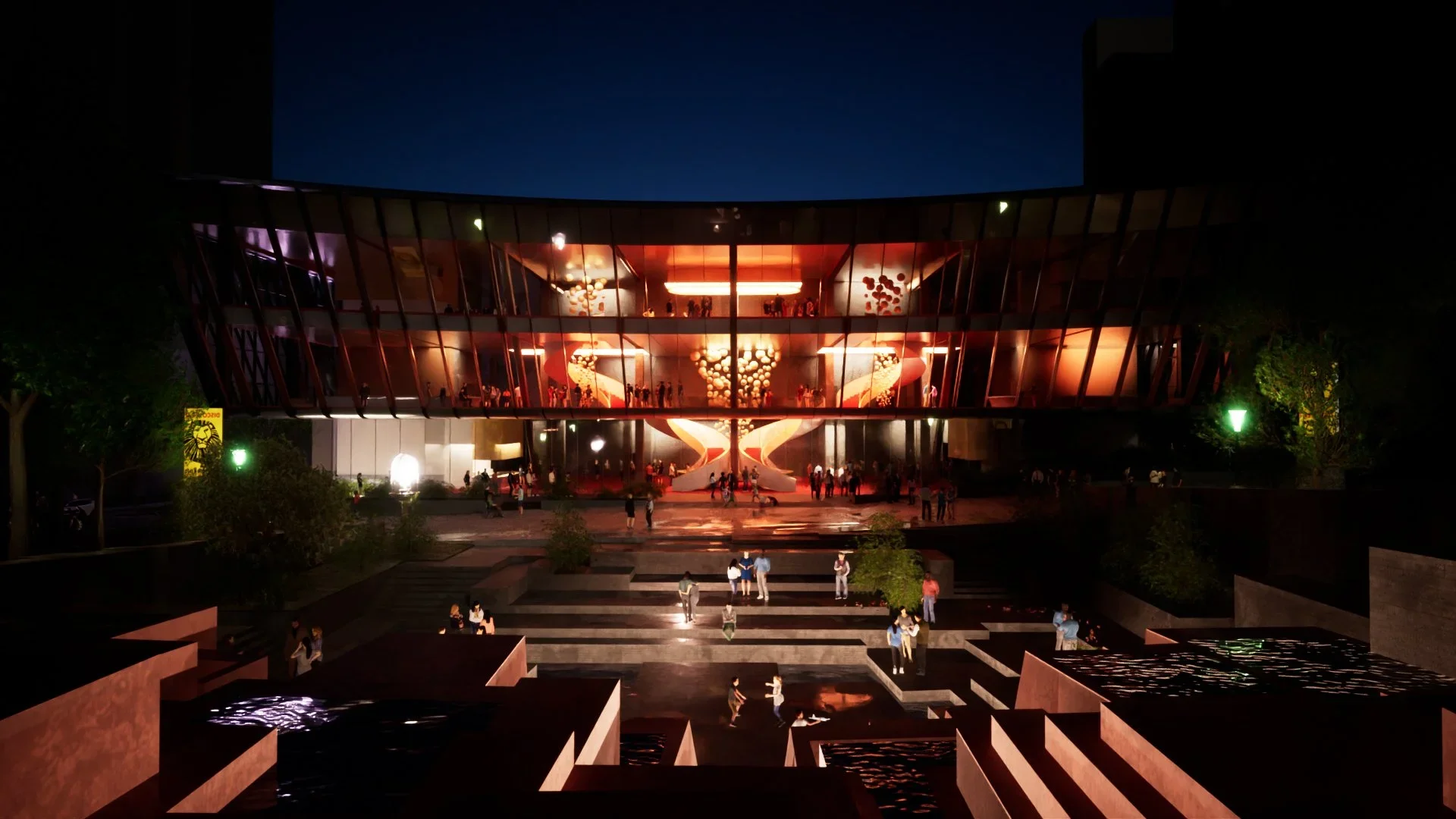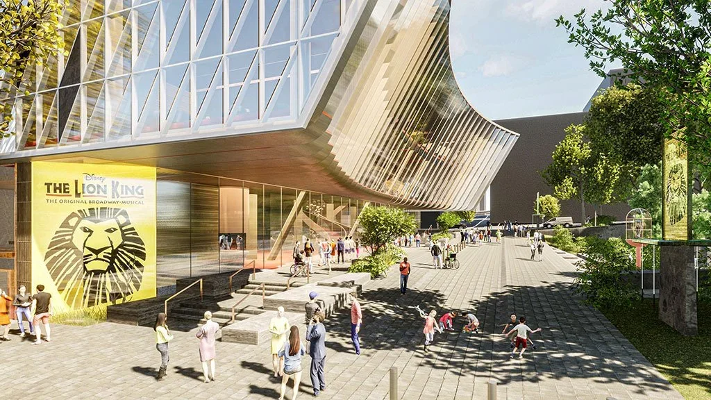 The design turns the theater inside out — enabling the surrounding environment to, itself, be theatrical.